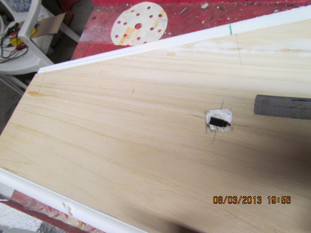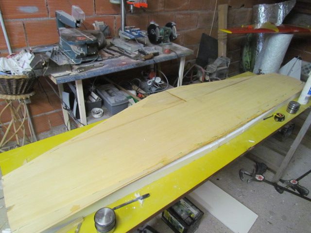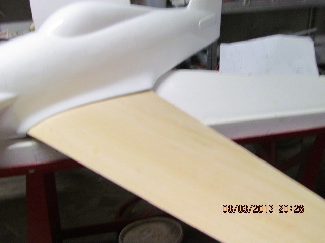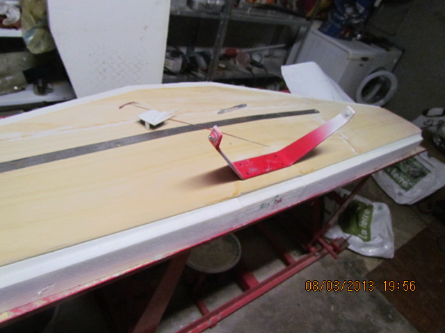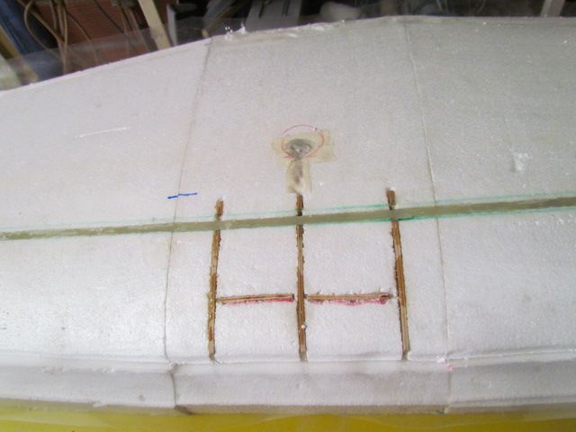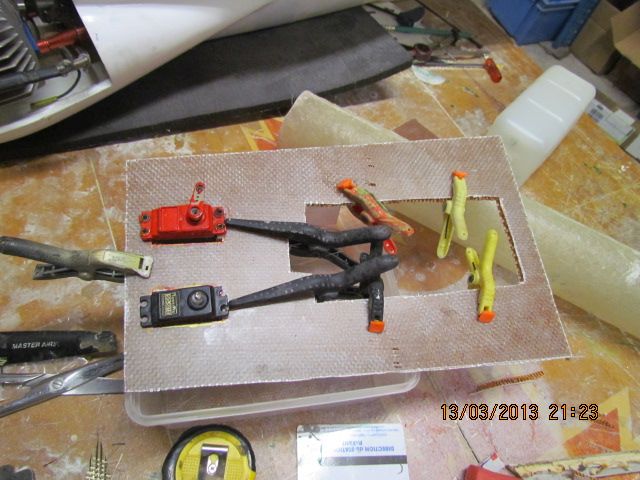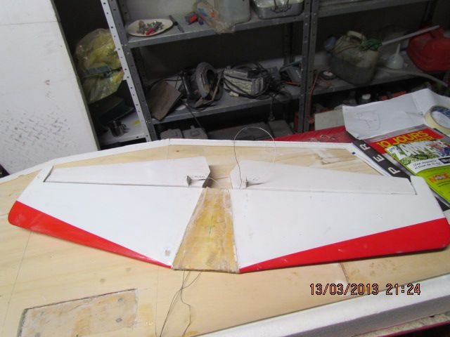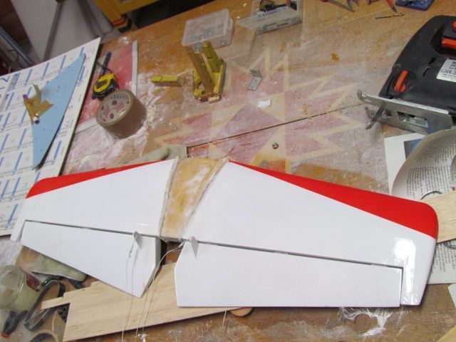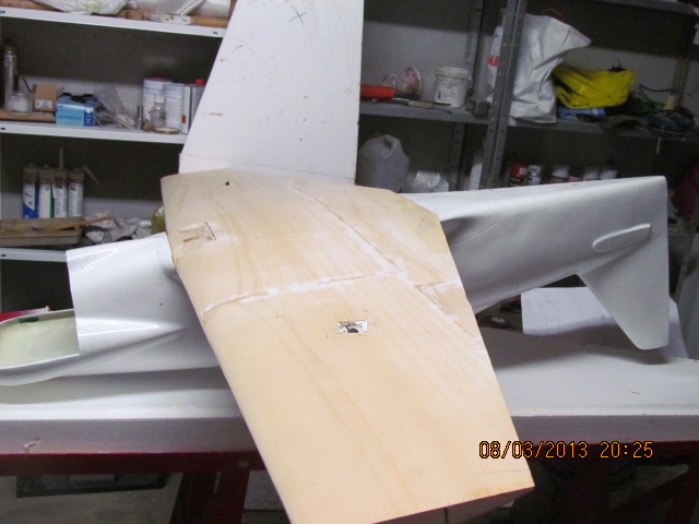 Marouflage des ailes au tissu de soie 20 grs, collage finition avec fuso, et montage du servo de profondeur.